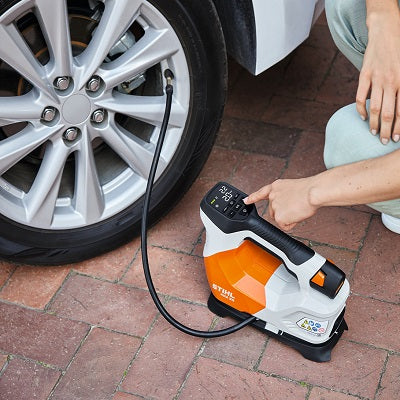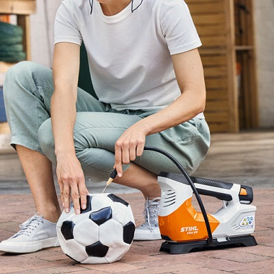 Il compressore a batteria compatto STIHL KOA 20 è ideale per il gonfiaggio a risparmio energetico e rapido di pneumatici per auto o biciclette, nonché per un comodo gonfiaggio e uno spurgo rapido di attrezzature per il tempo libero e lo sport come palloni o gommoni.
